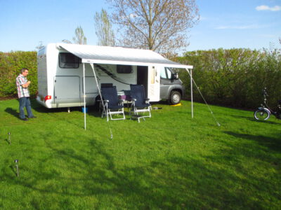 De camperplaats is ruim 150m2 groot en omzoomd door een haag en ligt aan de rand van de camping. De plaats is voorzien van grasbetonblokken of grind om op te staan. Op de foto-plattegrond is de camperplaats plaats nummer 15. Nummer 16 is een plaats voor een kleine camper zoals een VW bus. Plaats 15 is online te reserveren. Heb je interesse voor plaats 16 bel of mail dan even!